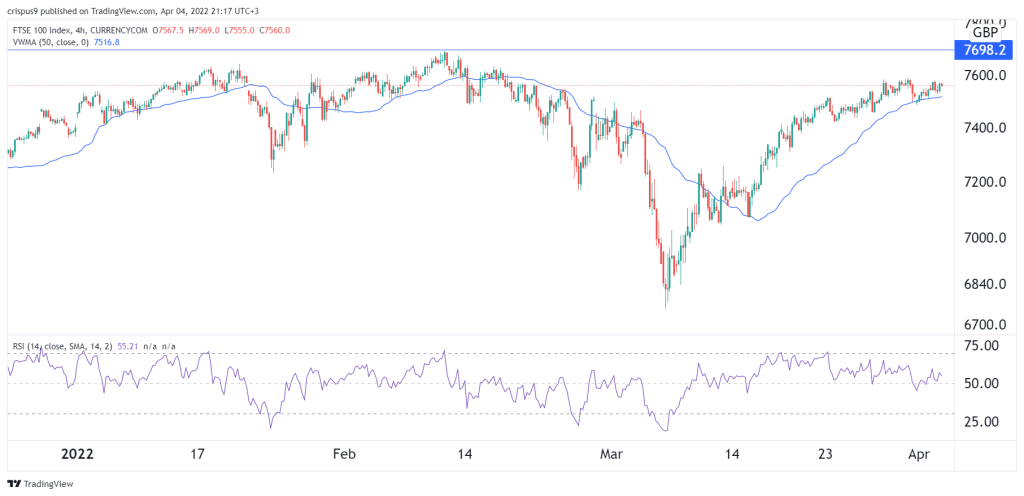 The FTSE 100 index has joined other global indices like the Nasdaq 100, DAX, and Dow Jones in their recovery. The index is trading at £7,560, about 12% above the lowest level this year. This price is a few points below its year-to-date high of £7,698. The key themes among the FTSE constituents have been the rising energy prices and the hawkish central banks. Here are the best performers in Footsie.