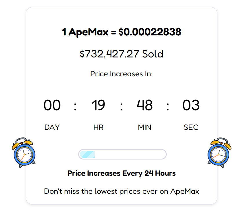 According to the latest ApeMax news, the project has successfully raised $732,427 during stage 1 of its presale. The presale price is increased after every 24 hours. The presale participants are eagerly waiting for the DEX listing anticipating exponential returns.
