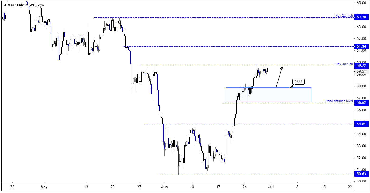 Crude Oil Price Finding Support at 56.70: Rigs Count Data in Focus