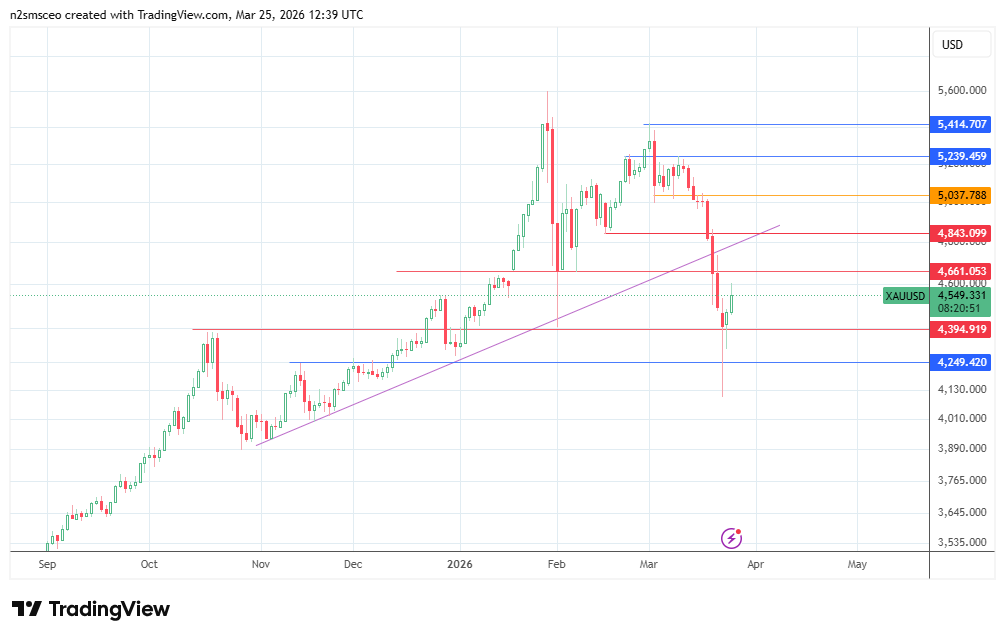 a) Early Week: Gold prices faced a capitulation-style selloff that mostly stemmed from the previous week’s higher-for-longer rate outlook from the Federal Reserve. Deferment of any rate cuts and the raised inflation outlook virtually put paid to any Fed easing expectations, at least in the first half of 2026. The selloff marked the worst stretch of gold price declines since 2013 in terms of scale. As of 19-20 March, higher US bond yields and oil-driven inflation fears kept the market firmly fixated on the “rates up” narrative, making gold unattractive relative to higher-yielding US Treasuries.