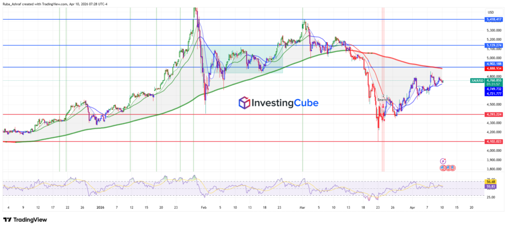 Gold is currently caught in a classic tug-of-war between two narratives. On one hand, the fragile ceasefire, with Israel still striking Lebanon and Iran warning of breaches, has prevented gold from crashing. On the other hand, when President Donald Trump announced a two-week ceasefire, gold immediately lost some of its “fear premium.” Investors are keeping a “safety net” of gold in their portfolio, protecting their investments just in case the Islamabad talks fail this weekend.