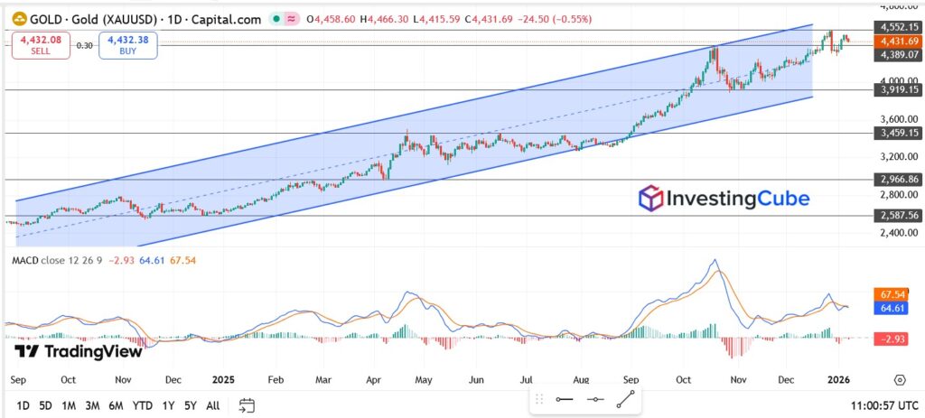 Yes. Gold remains in a rising channel on the daily chart, and the broader uptrend holds as long as prices stay above key support near $4,400.