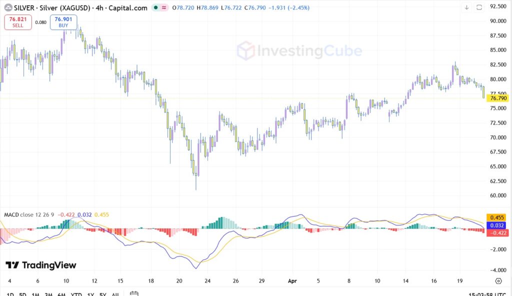 Silver prices were trading at $76.75 an ounce as of April 21, 2026, marking a sharp departure from the week’s earlier optimism. By 11:06 ET, spot silver had plummeted by 4.10%, hitting an intraday low of $76.71 after starting the session near $80.37. This aggressive sell-off comes as investors pivot toward the U.S. dollar, weighing heavily on the broader metals complex where gold prices also tumbled by 1.0% to trade at $4,772.71.
