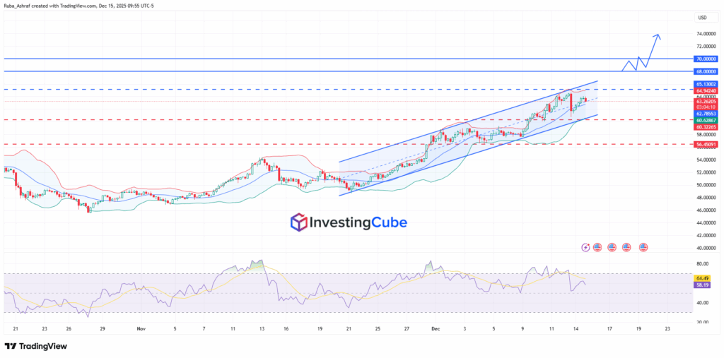 From a technical perspective, silver prices are trading within a well-defined ascending channel. It reflects a sustained bullish trend. As long as price action remains inside this channel, the upside bias stays intact. If the price breaks out above the upper boundary of the channel, it will push prices toward a new all-time high at 68.00 and then 70.00.