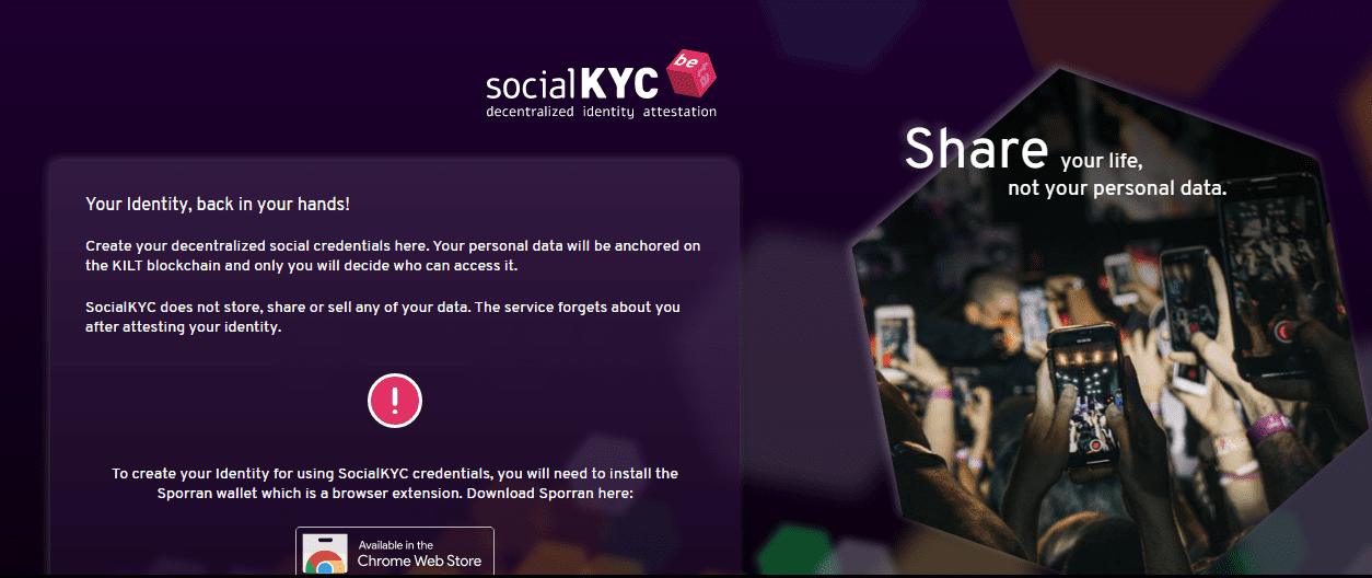 SSocialKYC operates on KILT Protocol, a blockchain initially developed by BOTLabs GmbH. Notably, KILT Protocol itself operates on the Polkadot ecosystem. SocialKYC uses the KILT Protocol’s wallet, Sporran, to store user credentials. That’s not all-the platform gives users total control over their credentials.