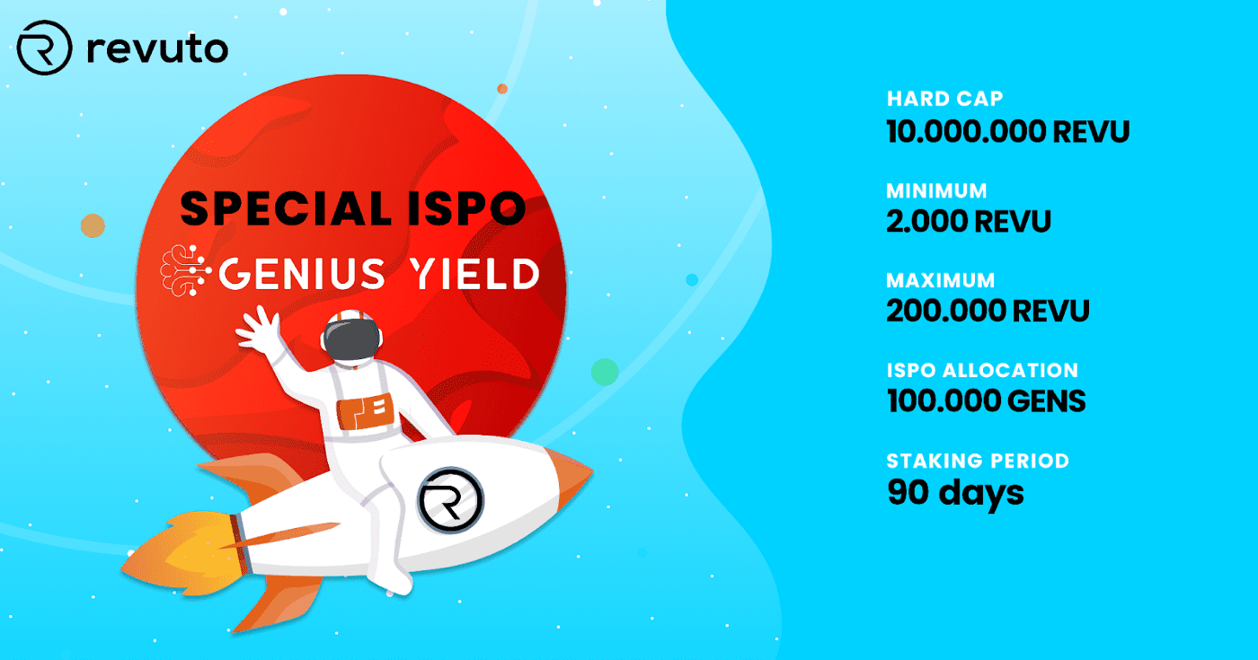 Users will be able to stake $REVU tokens and earn $GENS tokens. These rewards will be distributed as a part of the initial distribution of GENS tokens. Moreover, the rewards from the staking pool rewards centre will be boosted, guaranteeing users more rewards than the regular Genius Yield ISPO rewards. Distribution of the GENS rewards earned through the Revuto Staking Center will be after the end of the 90 day staking period, while users who delegate ADA in the standard ISPO will need to wait for the distribution of GENS tokens for 6-12 months after the Genius Yield TGE.