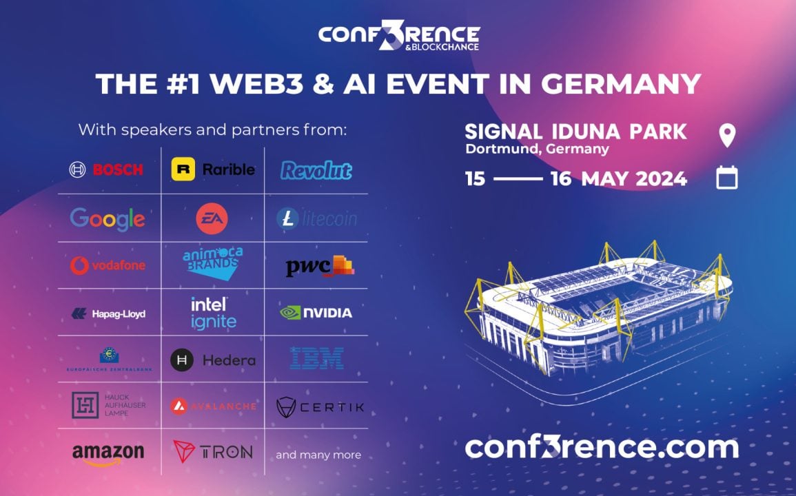 Scheduled for next week, May 15th and 16th at Signal Iduna Park in Dortmund, Germany’s largest stadium, CONF3RENCE aims to bridge the traditional economy with the burgeoning Web3 and AI sectors. The event is set to be a pivotal moment for the blockchain community, featuring 150+ speakers and hosting more than 100 partners & exhibitors from around the globe.