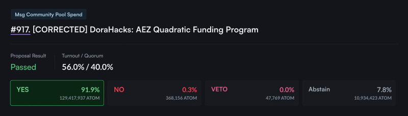 As one of the largest treasury funding applications, this proposal sparked extensive discussions within the Cosmos community and received overwhelming support. Over $1 billion worth of ATOM, including major validators and core Cosmos contributors, voted in favor. The approval rate reached 91.9%, making Gov Proposal 917 the motion with the highest approval rating in the Cosmos Hub’s history.