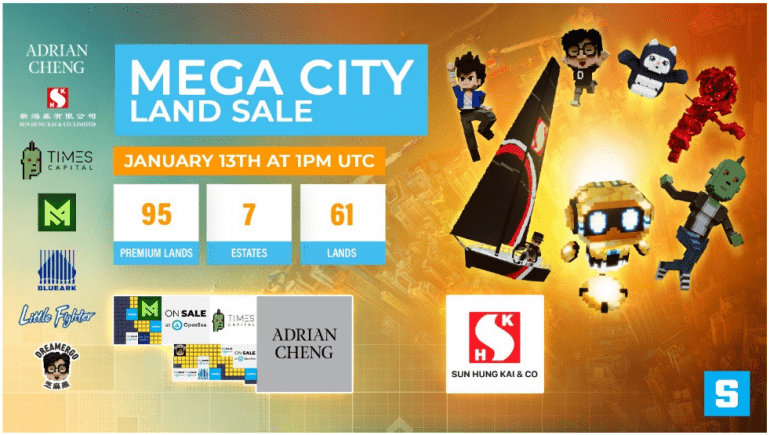 The name of the new land is Mega City, which is a new map in the Sandbox metaverse. The Mega-city map will be acquired by multiple Hong Kong partners from different industries, ranging from entertainment to real estate, music, finance, and gaming.