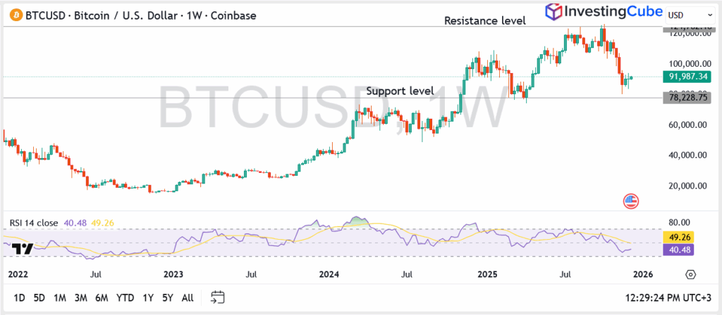 On the upside, the first resistance zone appears around 94,000–95,000 dollars, where price previously stalled. A clean break above 98,000 dollars would confirm stronger recovery momentum ahead of Wednesday’s Fed decision, potentially opening the door for a move back toward the psychological 100,000 zone.