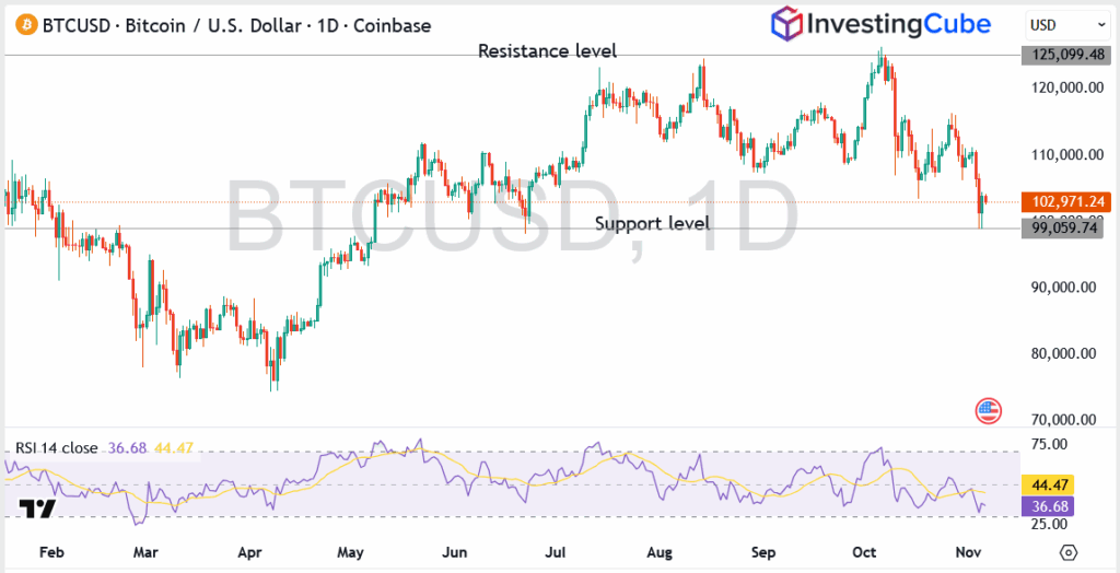 A confirmed daily close above $106 000 would strengthen the recovery narrative. Failure to hold $99 000 could expose $95 000.