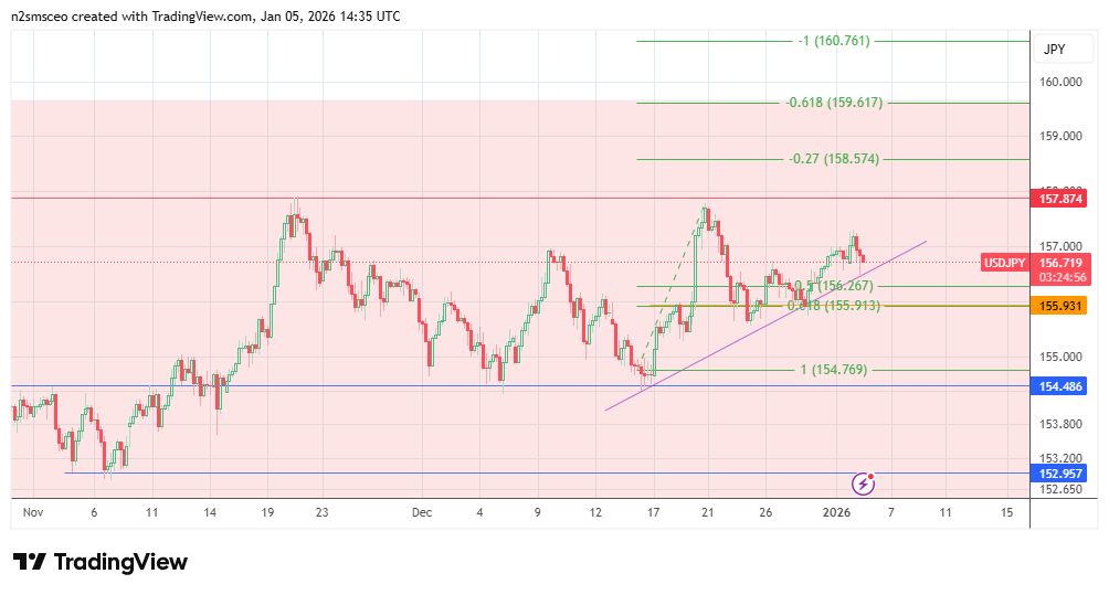 The pair ended 2025 on a higher note despite the greenback posting three-month lows in December due to the Fed’s commencement of additional easing. However, the weekend invasion of Venezuela, which has effectively put the US in charge of the country’s oil flow, has introduced a measure of geopolitical impact in early January trading. The USD/JPY started the trading day on 5 January 2026 0.3% higher. However, the pair has lost its early gains and is now 0.11% lower as of writing.