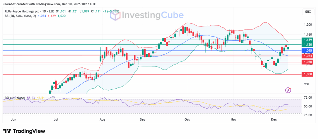 Rolls Royce stock price daily chart on December 10,2025 with key support and resistance levels. Created on TradingView