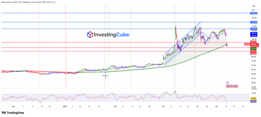 The WTI oil futures slip 15%, dropping from $100 to $93 per barrel. The Brent crude oil (UKOIL) declined by approximately 9.39%, with the previous close at $103.43 and an open at $95.00. Although this drop moves, oil prices remain well above the levels where they were before the war. Brent crude oil was trading below $73 a barrel before the US-Iran tensions began. With that, we have to highlight important things:
