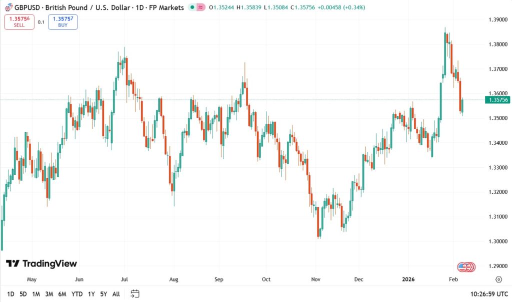 Since mid-January 2026, the GBP/USD pair has experienced a sharp reversal, tumbling from a multi-year peak of 1.3870 to around 1.3560 as of February 6. This represents a more than 2% decline in just over a week, effectively wiping out the “Sterling surge” seen at the start of the year.