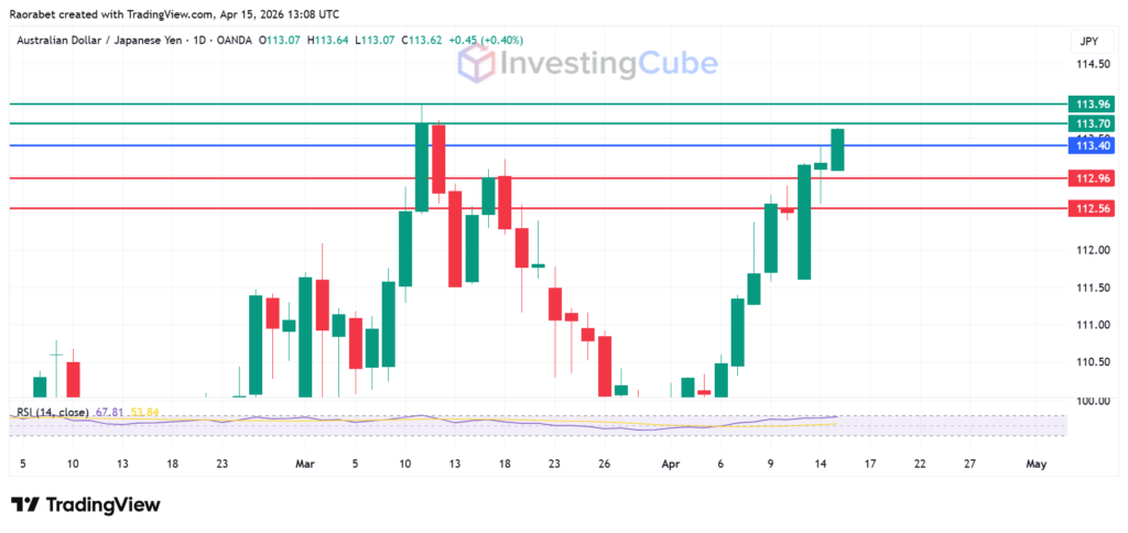 AUD/JPY daily chart with the key levels of support and resistance on April 15, 2026. Created on TradingView
