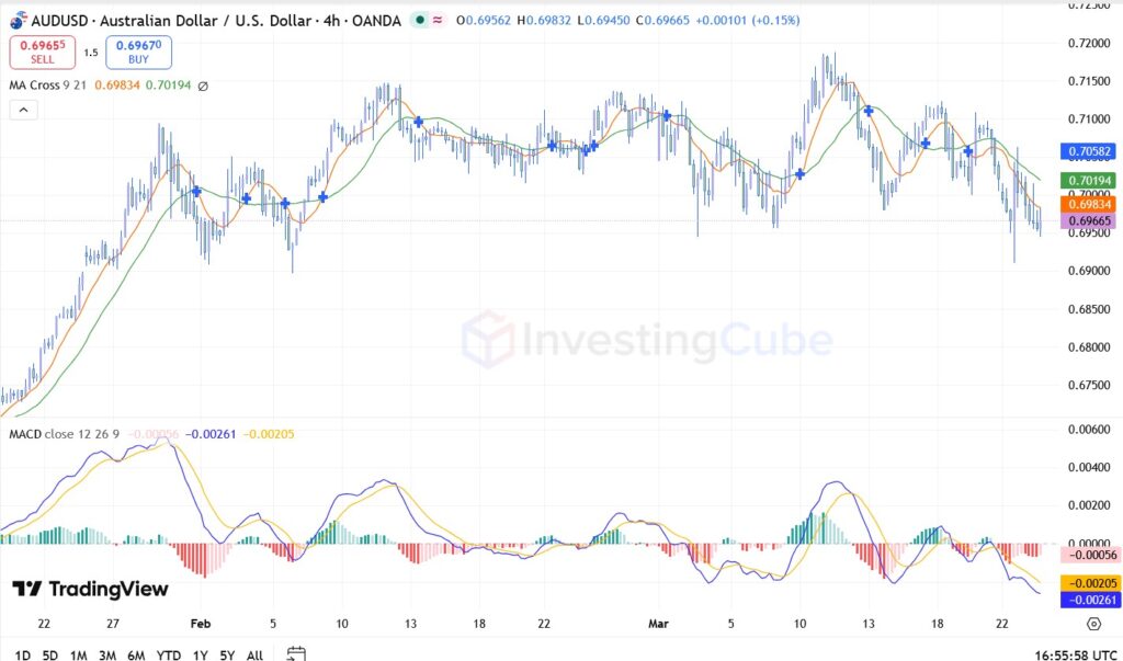 - Support: 0.6945 This is the critical area where the price is currently finding buyers. It aligns with the recent lows seen in late February.