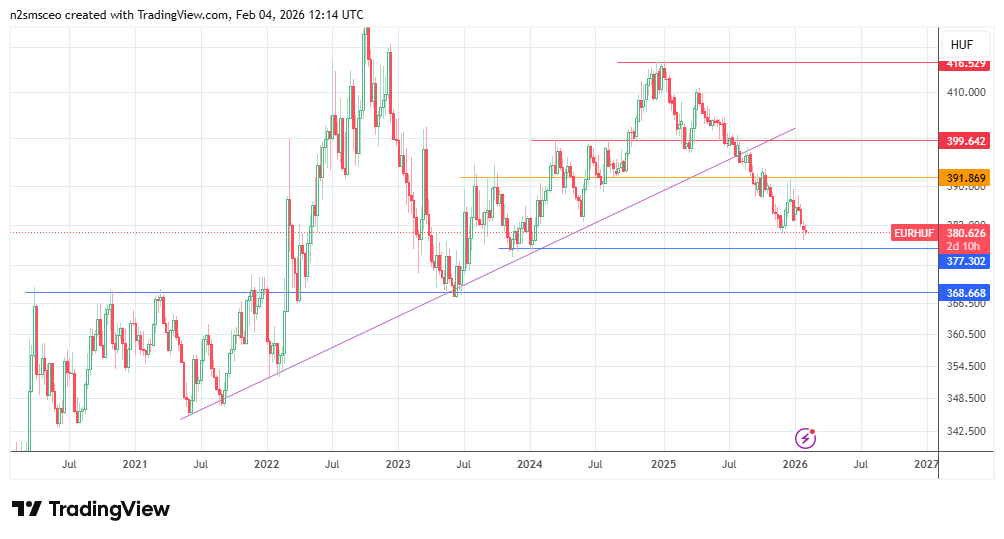 Several macro drivers, including the upcoming Hungarian elections, dominate the EUR/HUF forecasts for 2026. The reference rate for the pair set by the European Central Bank (ECB) for the day is in the 380-387 range, covering late January and early February 2026. Retail price feeds across FX platforms indicate that the EUR/HUF is trading at the lower end of this price band.