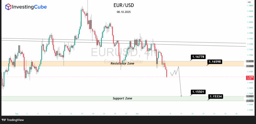 The euro isn’t having an easy October. Despite constant chatter about a U.S. government shutdown, it is the euro rather than dollar that looks more fragile. EUR/USD has been sliding steadily, unable to regain momentum above 1.167, and this morning’s price action near 1.1620 reflects the underlying nervousness in the market. For traders, the question now is whether this weakness is a temporary pause — or the start of a deeper move back toward the mid – 1.15s.