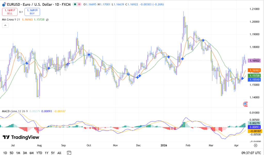 The gap down happened because US-Iran peace talks collapsed over the weekend. After more than 20 hours of negotiations in Pakistan, the two sides couldn’t agree on Iran’s nuclear program. President Trump responded by ordering a US naval blockade of the Strait of Hormuz. Oil prices jumped back above $100, and traders rushed back into the US dollar as a safe haven. The pair had closed Friday near 1.1725 and opened Monday around 1.1685, that’s the gap