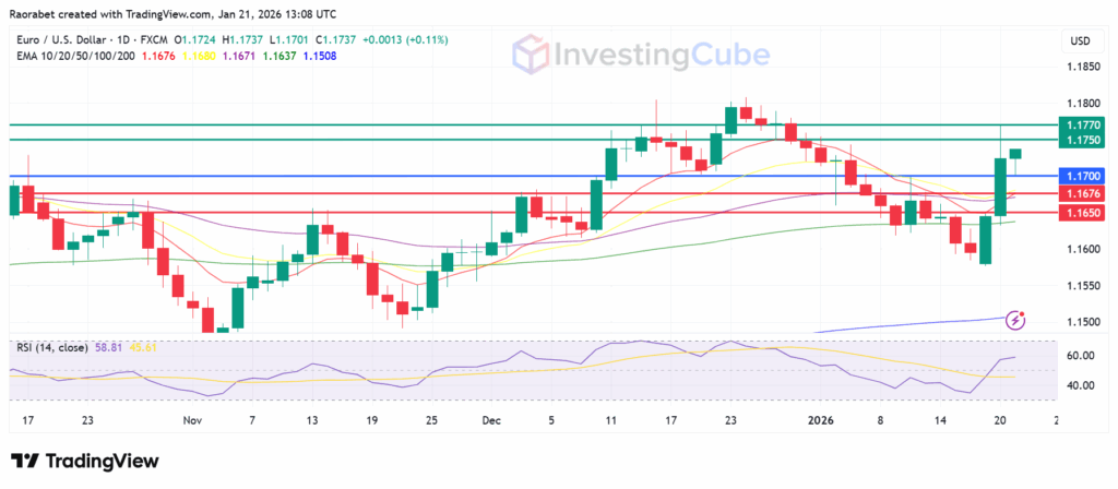 After a few weeks of decline from its December highs, the EUR/USD pair has bounced back this week. From late December 2025 to mid-January 2026, the pair steadily declined because of a strong U.S. dollar and a lack of positive news from the Eurozone. But around January 21, 2026, things changed, and the pair recovered from a two-month low of 1.1576, trading above 1.1700.