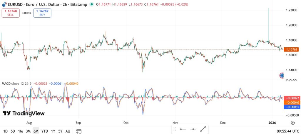 EUR/USD remains subdued during European trading hours, hovering around the 1.1670–1.1680 region, with the bearish bias from late-December highs still intact. Price action has remained range-bound, reflecting a cautious market tone as investors position ahead of a busy US macro calendar.