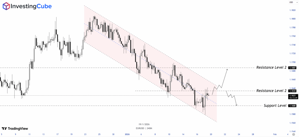 - Technically, the pair is trading within a descending channel, with 1.1600 as key support and 1.1680 as major resistance.