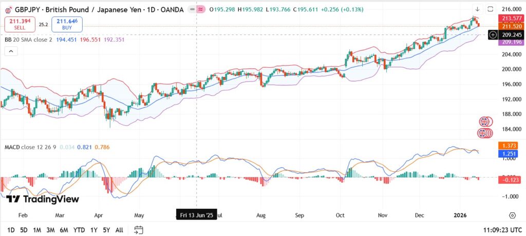 This contrast between a fragile yen and a steady pound explains why GBP/JPY remains elevated, even as the pair struggles to extend gains decisively.