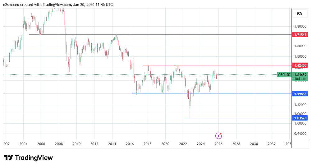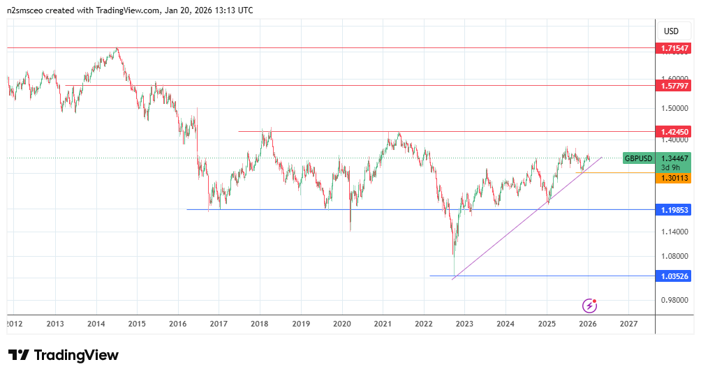 The current price of the GBP/USD as of writing on 20 January 2026 is 1.3445.