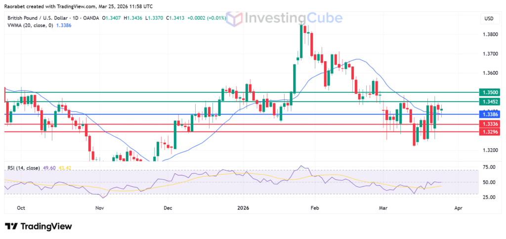 GBP/USD daily chart with the key levels of support and resistance on March 25, 2026. Created on TradingView