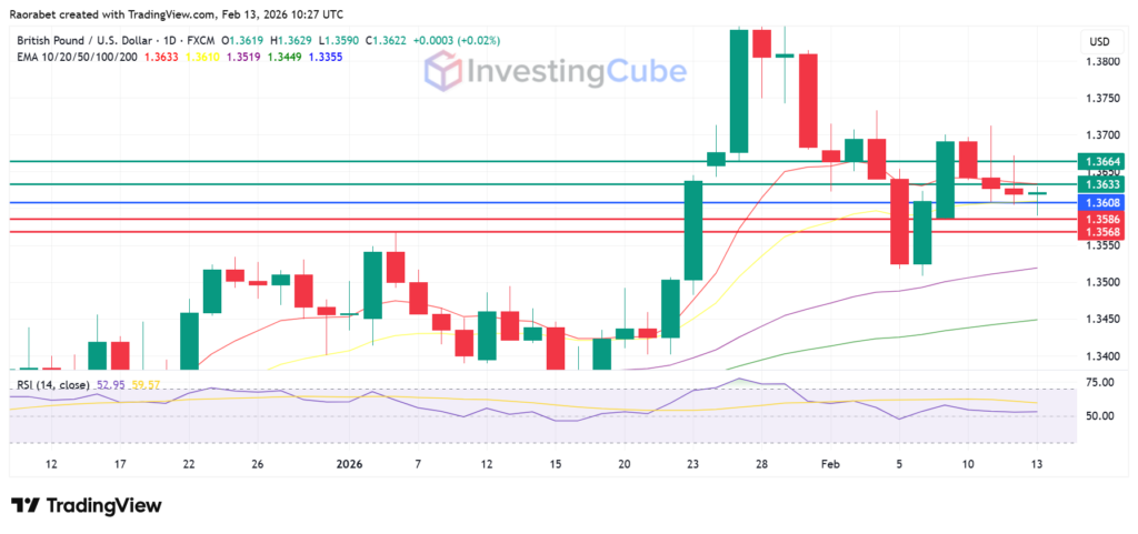 GBP/USD FX pair on the daily time frame with key levels of resistance and support on February 13, 2026. Created on TradingView