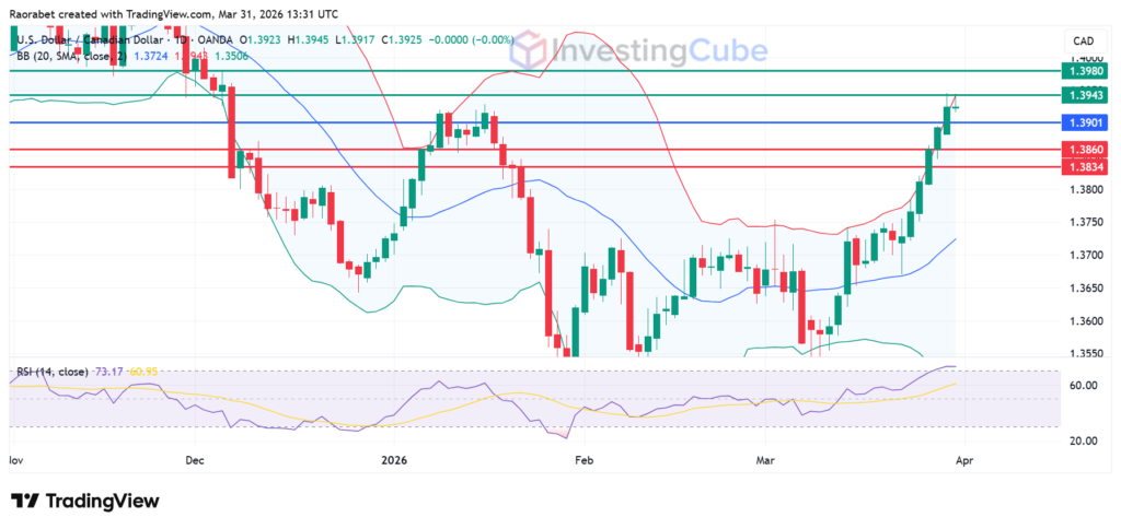USD/CAD daily chart with key levels of support and resistance on March 31, 2026. Created on TradingView