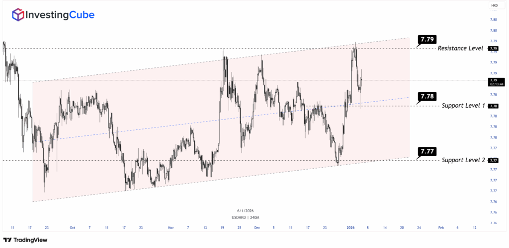 [InvestingCube, 7 January 2026] The USD/HKD still retains one of the lowest volatility profiles in global FX, as Hong Kong’s currency regime is supported by a robust institutional framework. At the start of January 2026, USD/HKD is more or less in the 7.78 – 7.79 range, still deep inside this decades-old conversion band. According to data from Yahoo Finance, the 52-week trading range for the pair is very narrow, and this underpins its status as a policy-anchored currency pair rather than a speculative trading instrument.