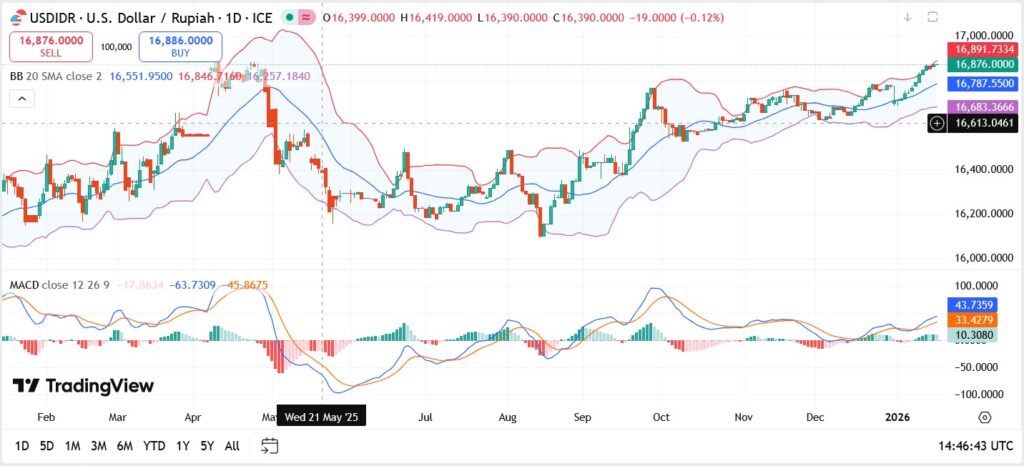 USD/IDR remains elevated due to rupiah weakness driven by fiscal concerns, global risk pressures, and a resilient US Dollar.