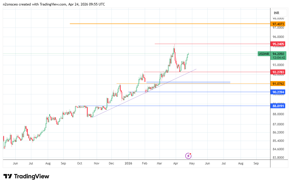 There has to be a significant escalation in the geopolitical situation for us to see USD/INR above 96.00. The major move for traders right now will depend on whether crude prices stay elevated or calm down a bit.
