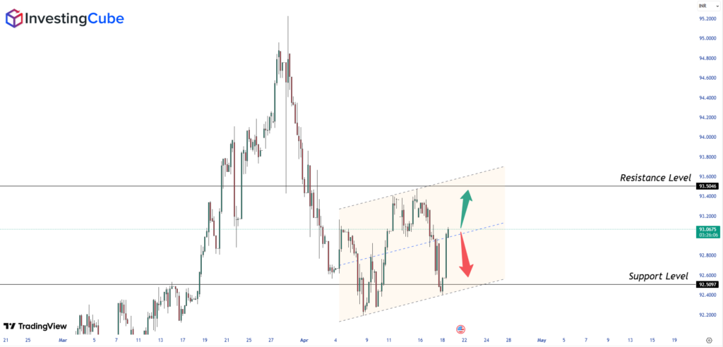 USD/INR was seen consolidating around the 92.56-92.78 range, although Reuters noted the broader weekly band as being in the 92.50-93.50 territory. This range provides some valuable context: