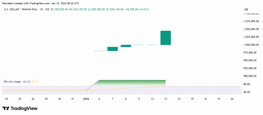 USD/IRR on the daily chart on January 14, 2026. Source:TradingView