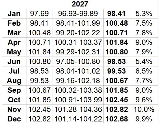 Long Forecast’s USD to INR forecast 2027 suggests the start of the year around 97.69 rupees. It expects the currency pair to average 98.53 by mid-year before rallying further to 102.82 by the end of the year. The prices can go much higher if the global economy enters a prolonged recession after the ongoing deflationary measures.