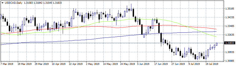 USDCAD trades 0.03 percent higher at 1.3166 in positive momentum for sixth consecutive day, having the daily high at 1.3167 and the daily low at 1.3154. USD continues to attract bids as investors have cut their interest rate cut expectations to 25 basis points by Fed next week. Crude oil Canada main export product has stabilized around $56 per barrel. The USD index is trading higher across majors all the week ahead of the FOMC decision next week.