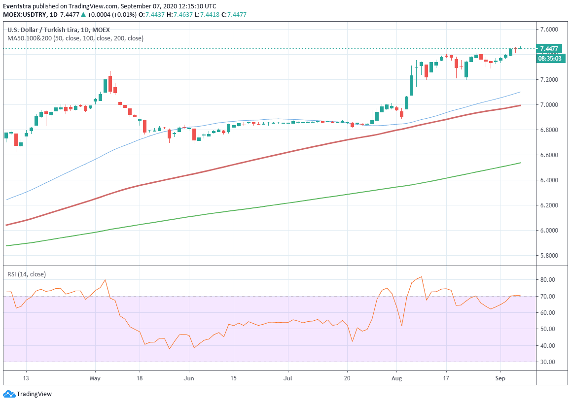 USDTRY is 0.20% higher at 7.4928 just shy of the record highs at 7.4987. The technical picture is clearly bullish, and all the pullbacks should be considered as a buying opportunity. I have mentioned in my previous article that Turkish Lira weakness will persist: USDTRY Hits Another Record High, as Turkish Lira Weakness Persist.