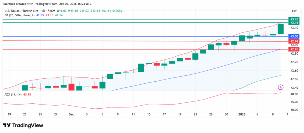 The US dollar has maintained its upward path against the Turkish lira in early 2026, registering year-to-date gains of approximately 0.5%, with the USD/TRY pair hovering around 43.14 as of this writing.
