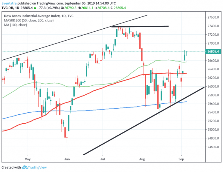 Wall Street indices started higher today with the Dow Jones adding 0.21% at 26,7835.63. The Nasdaq currently is trading 0.01% higher at 8,119, while the S&P 500 trading 0.18% higher at 2,981.77 as US and China plan to return to the negotiations table on October. On the macro data front United States Nonfarm Payrolls came in at 130K below expectations of 158K in August, the Average Hourly Earnings (year over year) came in at 3.2% beating forecasts of 3.1% in August. United States Unemployment Rate matched forecasts of 3.7% in August, the Labor Force Participation Rate came up to 63.2% in August from previous 63%.