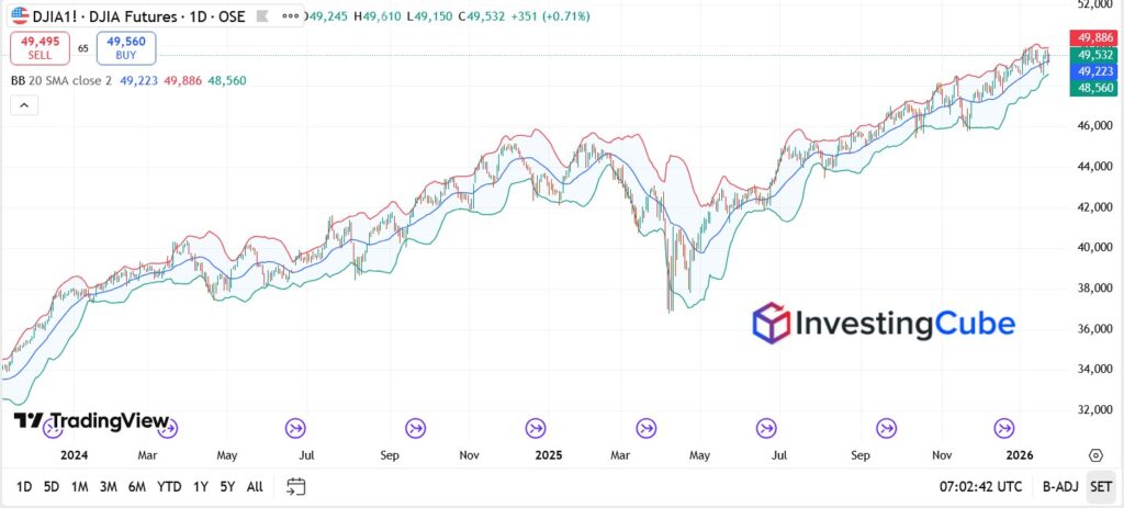 The 49,500 area is increasingly seen as a battleground, not a confirmed breakout. With the temporary US spending bill set to expire at the end of January, debt ceiling risk is starting to compete with the Dow 50,000 narrative. Some institutional desks expect the index to be drawn toward 50,000 first, followed by higher volatility or a correction if fiscal negotiations deteriorate into February.