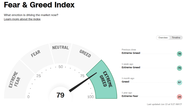 The CNN fear and greed index has hit 79, which is its highest level in the last four and half months. The index is based on seven different indicators. Currently, four different indicators are signaling extreme greed, two indicators show greed and only one indicator remains neutral.