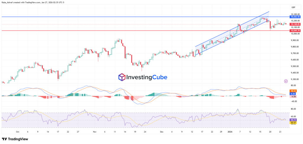 - The FTSE 100 remains in a broader uptrend, with recent weakness reflecting profit-taking rather than a trend reversal.