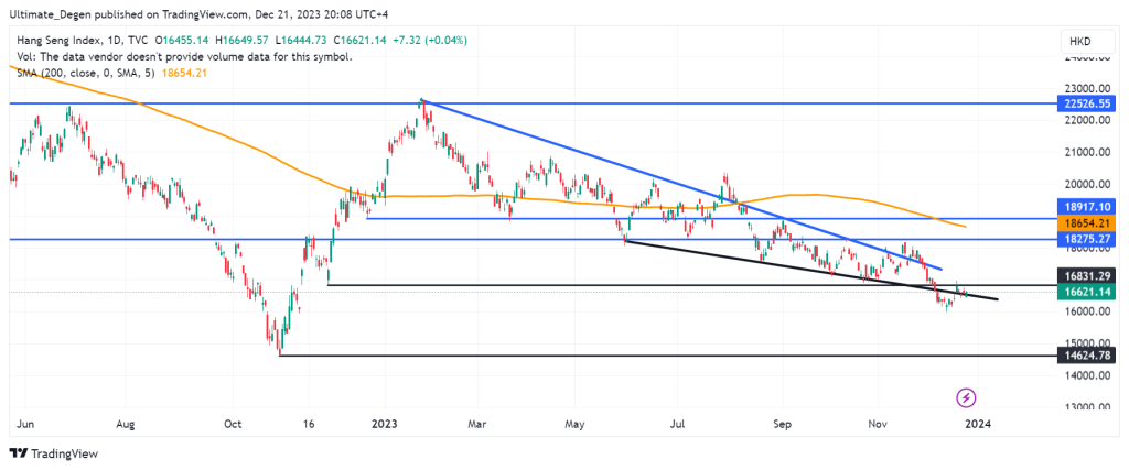 The technical analysis reveals that the HSI forecast has flipped bearish after a recent rejection from the 16,800 points level. I mentioned this level many times in my previous forecasts as it was a strong support. However, the recent breakdown below this level has now turned it into a resistance level.