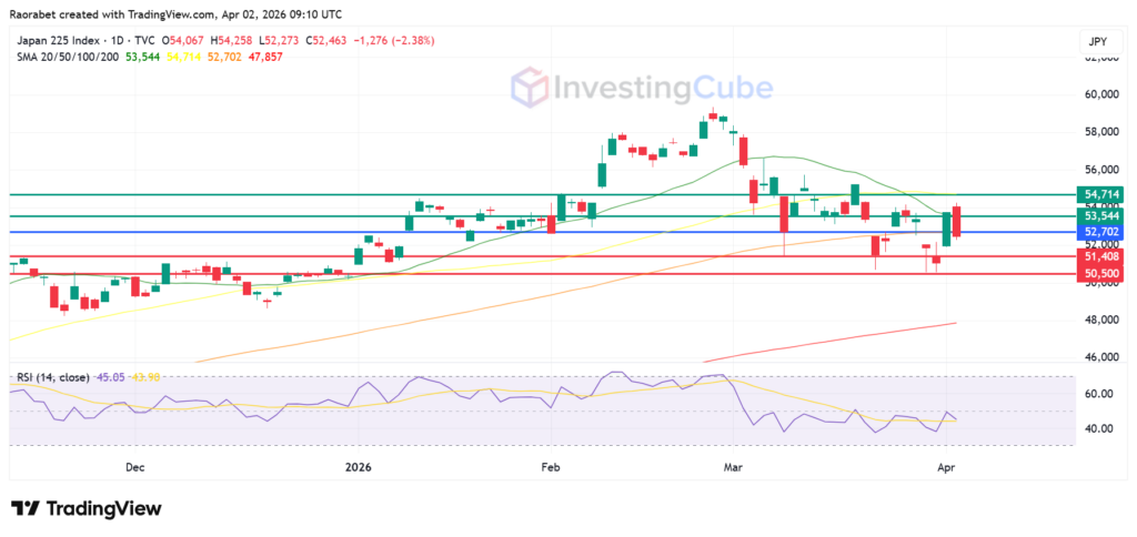 Nikkei Index daily chart on April 2, 2026 with the key levels of resistance and support. Created on TradingView