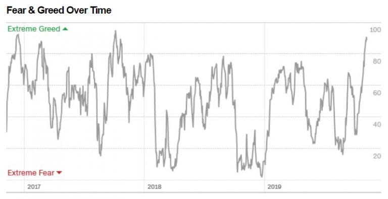 CNN’s Fear and Greed index have soared to levels not seen since 2017, indicating that US stock market investors and traders will do better to wait for a correction before buying stocks.