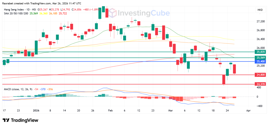 Hang Seng Index performance on the daily chart showing key levels on March 26, 2026. Created on TradingView