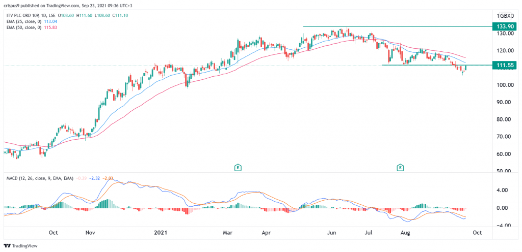 The ITV share has been under pressure in the past few months as investors assess the media landscape in the UK as the economy reopens. The stock is trading at 111p, which is significantly higher than this month’s low of 105p.